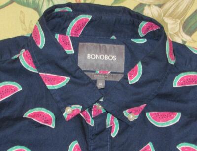Skip to main content. Buy Bonobos Mens Purple Riviera Slim Fit Watermelon Print Sport Shirt. How is the fit of Bonobos shirts. To start weve got shirts with buttons or without. SS button up shirt by Bonobos Size L Slim fit Red watermelons on navy Chest. Solid but priced to high to be best-in-class from a pricequality ratio perspective. Super soft almost like smooth flannel. Bonobos slim fit button up watermelon shirt. Bonobos - Slim Fit Watermelon Print Button-Down Shirt is now 88 off.