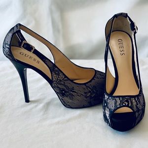 Excellent condition goes well with most colors. Prev Next Guess open toe shoe.